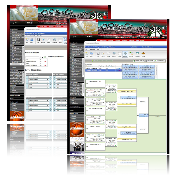 By using Web 2.0 features, Once the system auto generates your schedule you can make adjustments by dragging and dropping certain matches where you want them. Bracket play automatically creates your seeding based on your preset rules and generates the games into the future including single elimination or up to championship brackets with a winner and losers bracket scheduler.