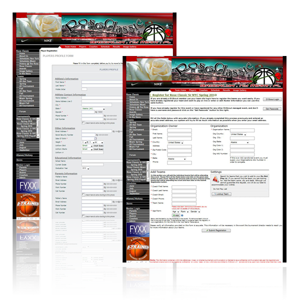 Once your event is posted the information is automatically updated to Your tournament Home Page. From There registrations for teams and individuals (showcase tournaments) are easy to use and can also collect online credit card payments.